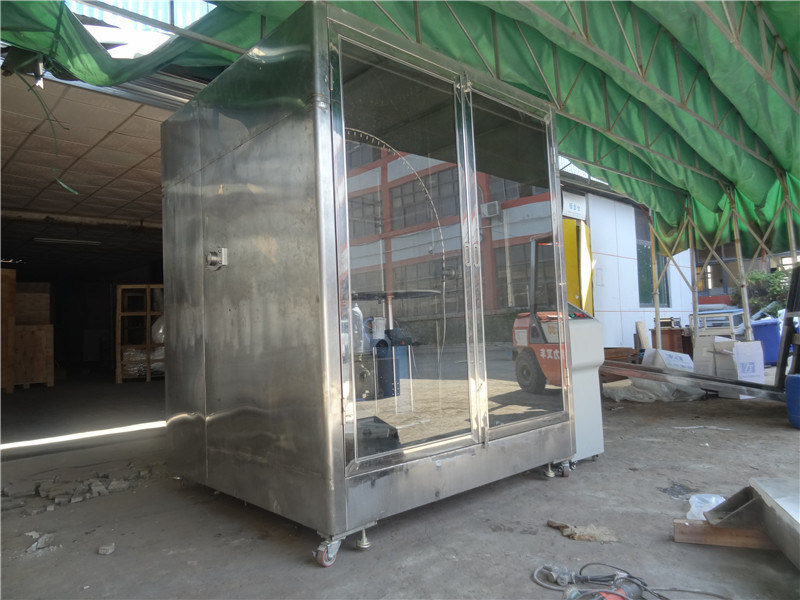 La camera di prova ambientale dello spruzzo materiale universale dell'acqua vaporizzata del IPX è utilizzata a simulare l'illuminazione, i ricambi auto, gli elettrodomestici ed altri prodotti nello stato di umidità o di pioggia, per vedere l'influenza dell'acqua ai prodotti. Con questo può verificare la resistenza alla penetrazione della pioggia ed all'abilità a prova d'umidità dei prodotti.